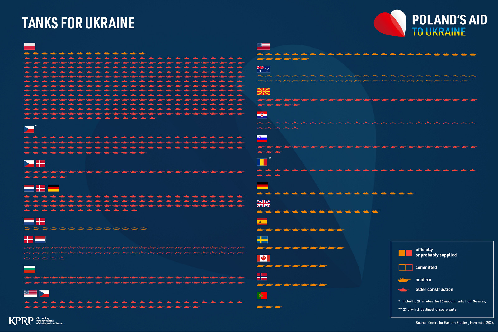 Na základě nových kontraktů by mělo Polsko do roku 2030 disponovat 1 100 tanky, z toho 61 vyrobenými přímo na domácí půdě. Počet tak převýší kombinovanou kapacitu Velké Británie, Německa, Francie a Itálie, které se očekává, že dohromady budou mít kolem 950 tanků. V rámci NATO budou mít více obrněnců pouze Turecko a Řecko.